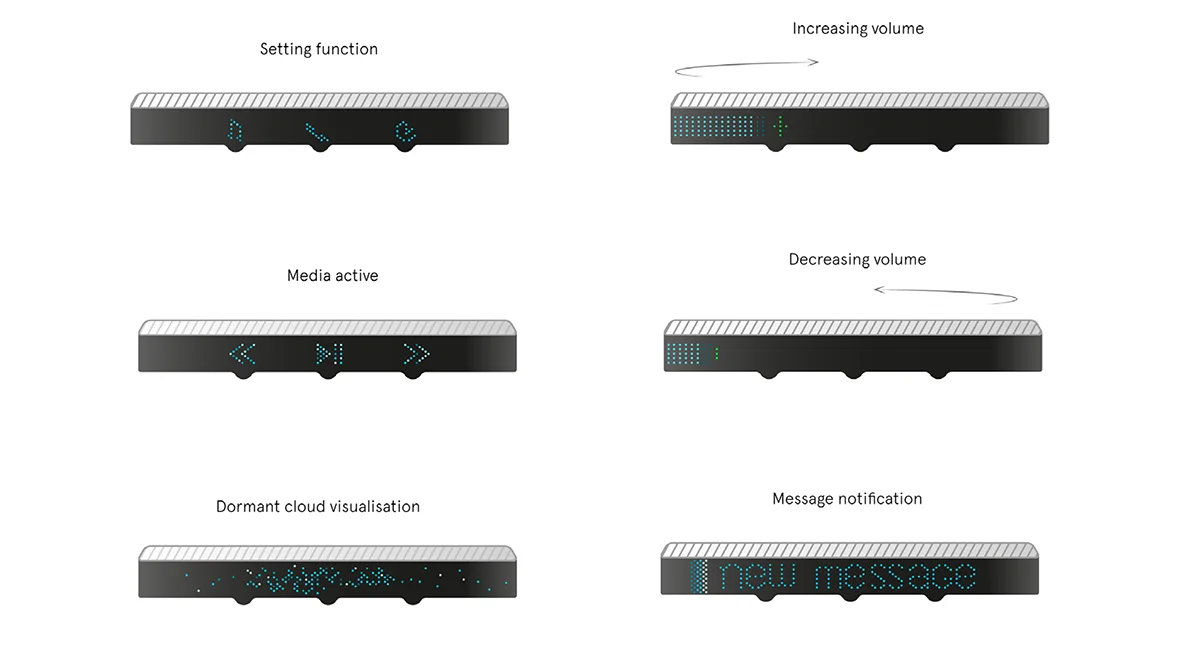 I created an extensive research document, collating product 'stories', created sketch concepts, developed these concepts in 2D rendering and designed how the user might interact with this device for each concept.