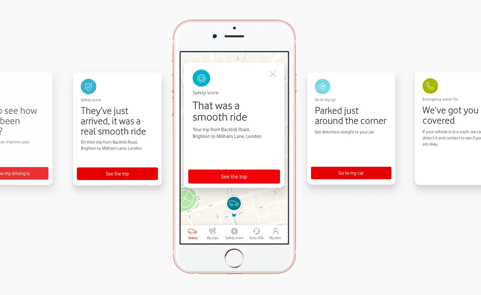 V-Auto is a telematics app launched by Vodafone. The V-Auto SIM enabled telematics device is installed in a customer’s car and, once set-up the device then sends near realtime information to the V-Auto app. The in-car device offers a range of features to the customer, including current car location, automated contact of emergency services in the event of a crash, insurance discounts based on driving behaviour and in car WiFi.