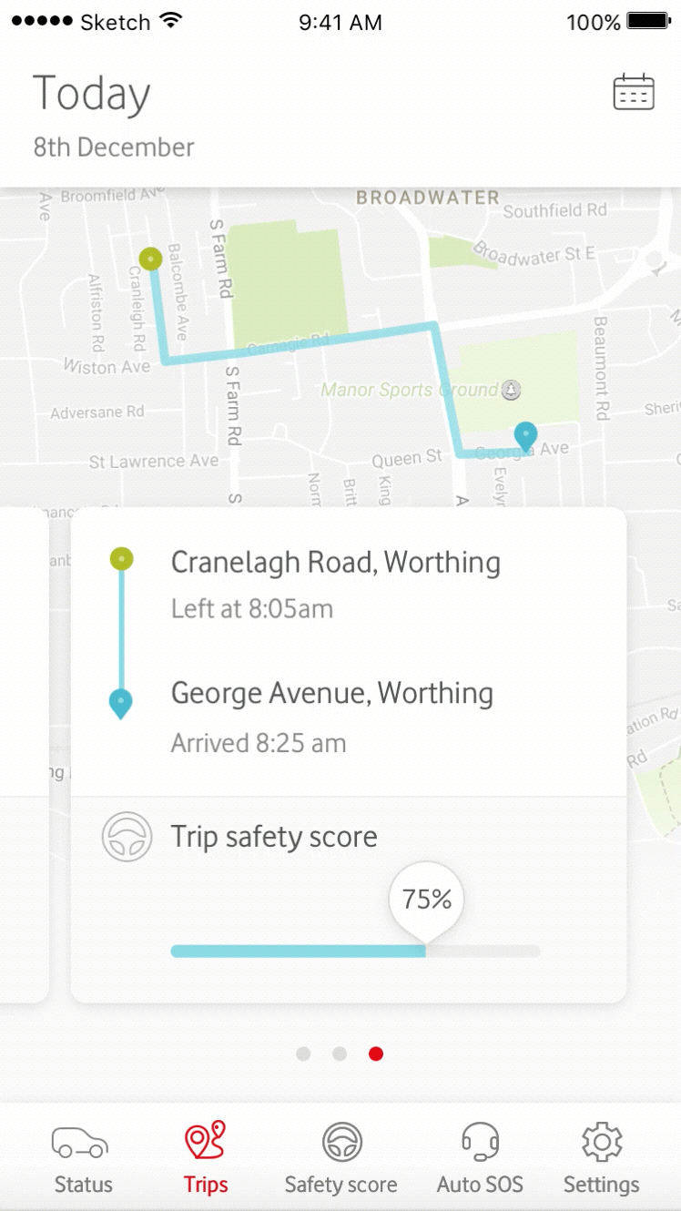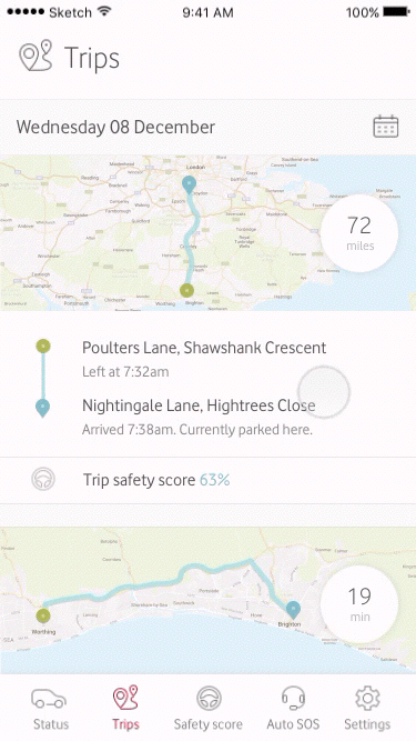 Previously titled the ‘Drivescore’, renaming this feature to include the term ‘safety’ became key in users accepting criticisms for their driving behaviour. User engaged with the detail of the bar chart design, users also engaged with the emoji score concept.