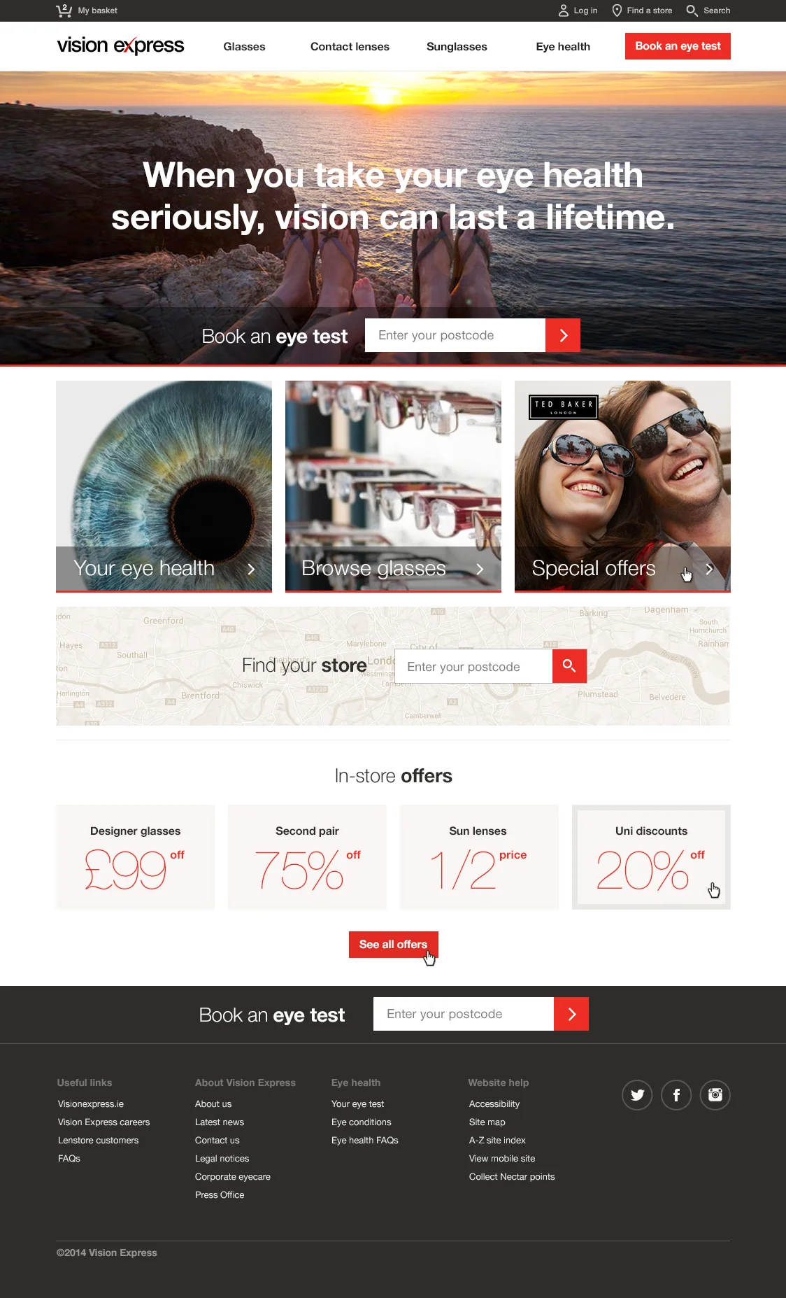 When Vision Express briefed us with to redesign their website they had a very clear objective; implement the new campaign of "Vision. Taken Seriously" and convert more customers to book eye tests in store. This was the KPI that we used to judge the effectiveness of the redesign. As we looked at their digital estate and the devices visiting visionexpress.com, it became apparent that a responsive site was worth investing in.