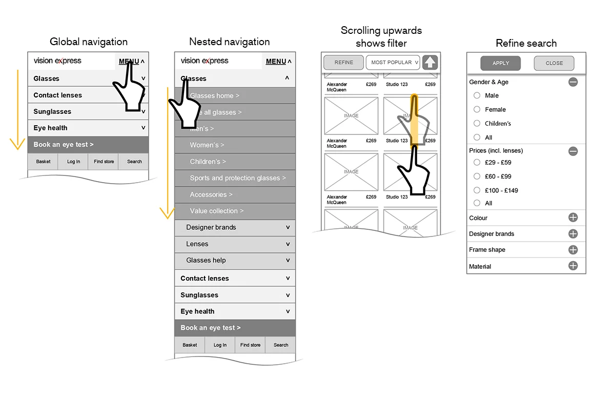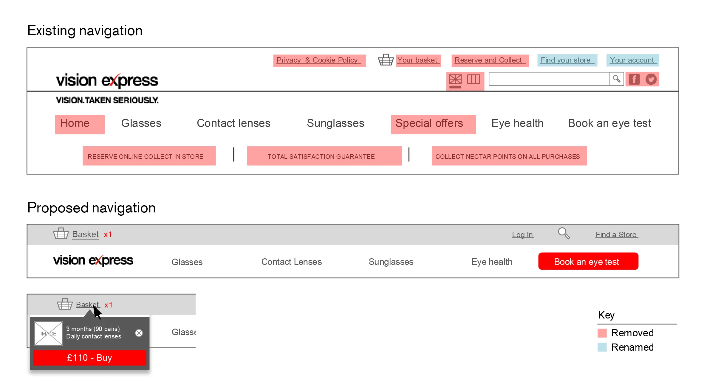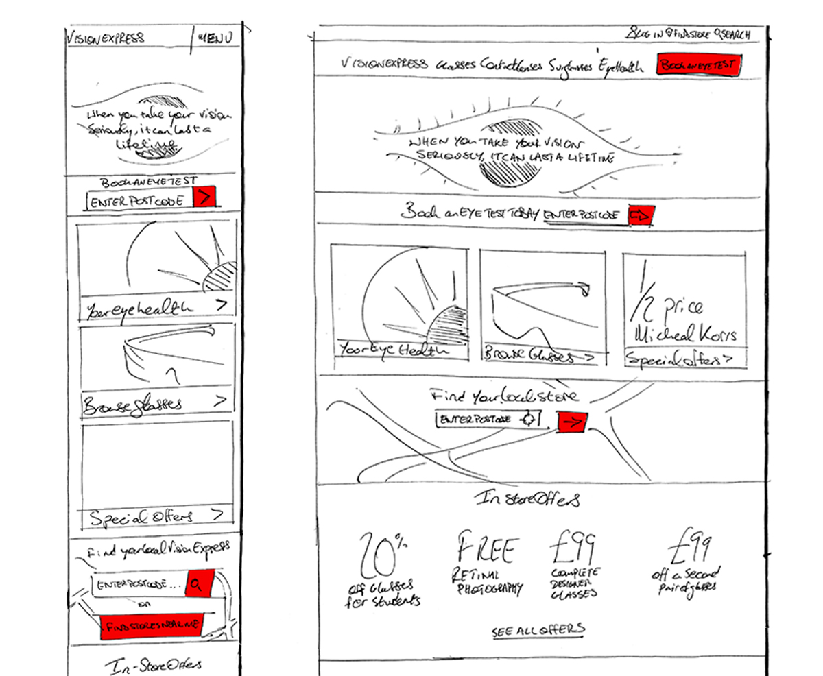 The analytics of the redesigned website showed that (of the pages we redesigned) we improved clickthrough to the eye test booking flow by 29%. When looking at the homepage in specific, we improved clickthrough by 13%. Our client informed us that estimated sales from website bookings meant the project paid for itself within 5 weeks of launching.